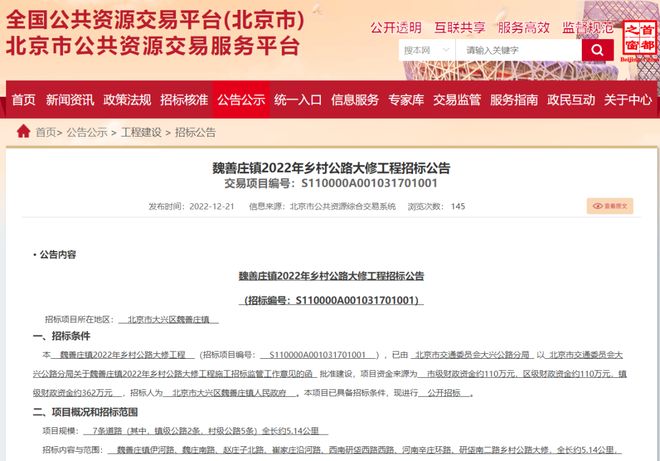 魏善莊鎮2022年(nián)鄉(xiāng)村(c¶☆ūn)公路(lù)大(dà)修工(gōng)程招标公告