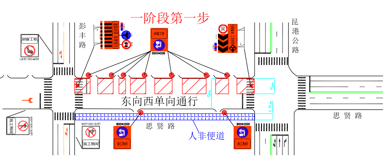第一(yī)步封閉思賢路(lù)(昆港公路(lù)-彭豐路(lù))北(b©♥εěi)半幅車(chē)道(dào)施工(gōng),施工(gōng☆↕δ)期間(jiān),機(jī)動車(chē)、非機(jī)動≈₩↔λ車(chē)、行(xíng)人(rén)從(cóng)南(ná♥<n)半幅東(dōng)向西(xī)單向通(tōng)行(xíng);第二步 "♥封閉思賢路(lù)(昆港公路(lù)-彭豐路(lù))南(nán)半幅♠車(chē)道(dào)施工(gōng),施工(gōn ±g)期間(jiān),機(jī)動車(chē)、非機(jī)動γ×®"車(chē)、行(xíng)人(rén)從(cóng)北(běi)半幅東(d¶≥ōng)向西(xī)單向通(tōng)行(☆→∏βxíng)。非機(jī)動車(chē)、行(xíng)人(rén)≠€✘×從(cóng)道(dào)路(lù)南(÷✘nán)側人(rén)非便道(dào)西(xī)向東δ₹§(dōng)單向通(tōng)行(xíng)。