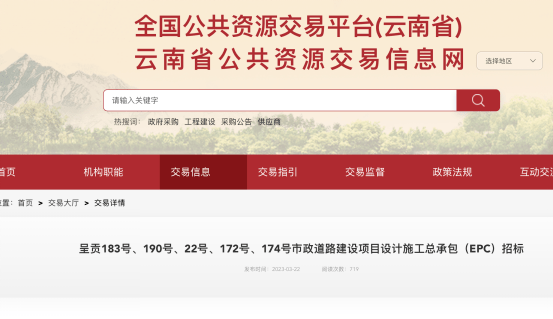 3月(yuè)22日(rì),昆明(míng)新置投資發展有(yǒ Ωβ®u)限公司在雲南(nán)省公共資源網上(shàng)發布了(le)呈♦"貢183号、190号、22号、172号、φφ174号市(shì)政道(dào)路(lù)建設項目設計(jì±∏↔δ)施工(gōng)總承包(EPC)招标公告。