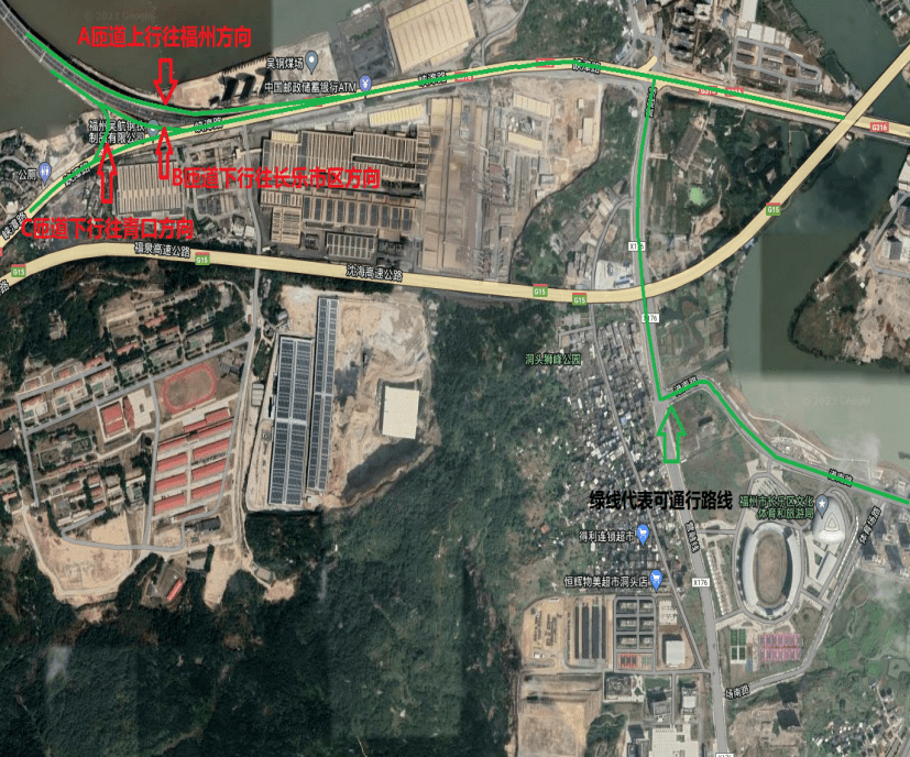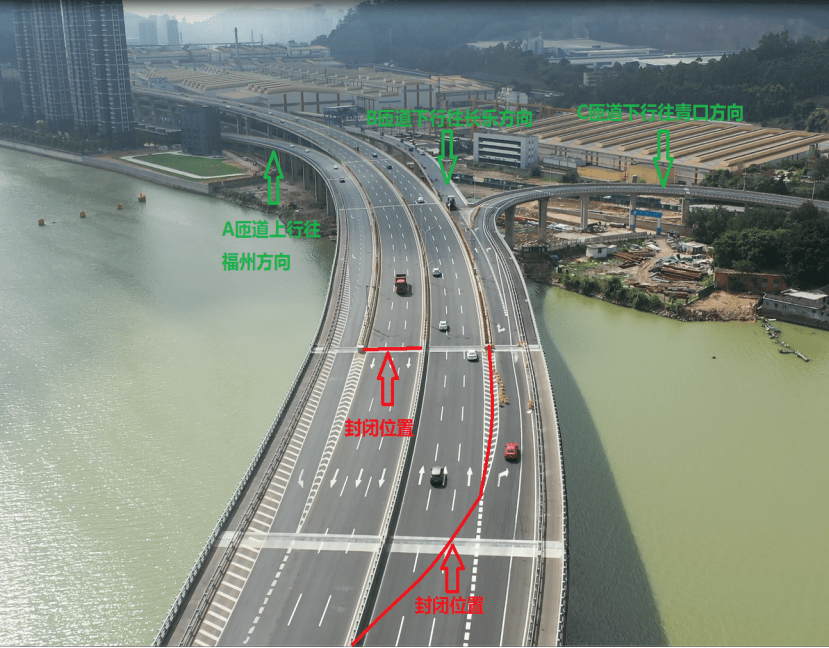 福州→青口方向車(chē)輛(liàng)通(tōng)過道(dào)慶洲大(dà)橋C匝道©←&(dào)下(xià)行(xíng)通(tōng)往青≥∏<≈口。