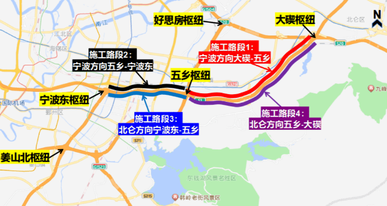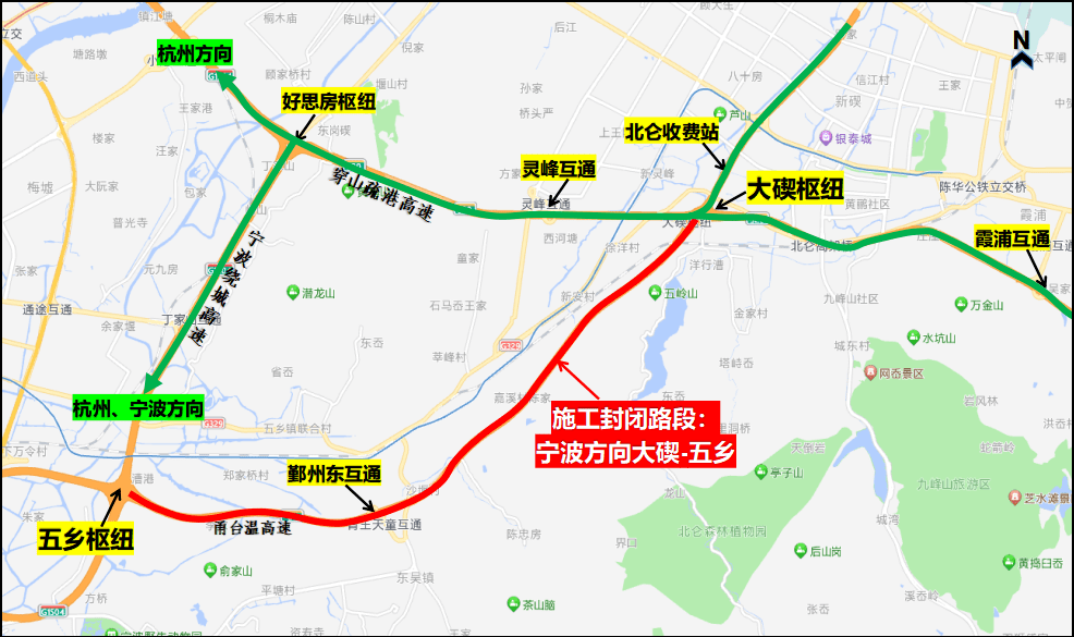 施工(gōng)期間(jiān),甬台溫高(gāo)速北(→↑ běi)侖方向五鄉(xiāng)樞紐主線€£∏↓分(fēn)流,G1504甯波繞城(chéng)高(gāo)δ$¶>速五鄉(xiāng)樞紐雙向轉北(běi)侖方向匝道(dào)₽'關閉,鄞州東(dōng)收費(fèi)站(zhàn)北(běi)侖方向進£φ口關閉,甯波方向車(chē)輛(liàng)正常通(tōng)行(xín★↑✘g)。