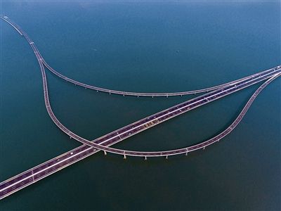 航拍(pāi)膠州灣大(dà)橋膠州連接線。 趙健鵬 攝
