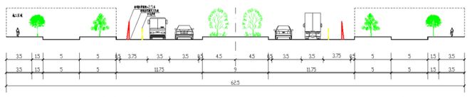 兩側各占用(yòng)半個(gè)車(chē)道(dào),用♥γ∞↔(yòng)H800護欄分(fēn)隔出人≠δ(rén)行(xíng)道(dào)及非機(jī)動車(chē)道(dào ∞ )。保留雙向4車(chē)道(dào),車(chē)道(dào)寬3.5•π₩ m。
