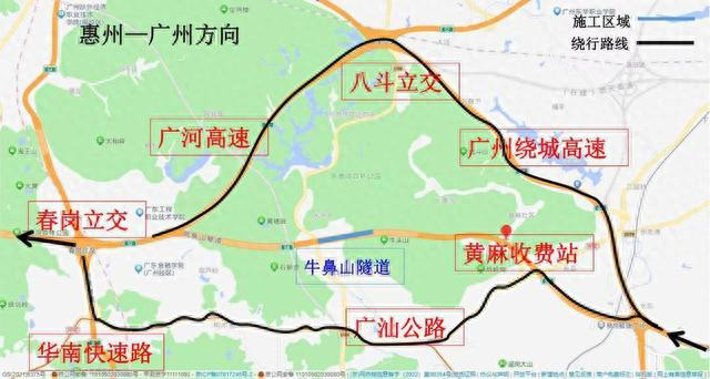 西(xī)行(xíng)(惠州—廣州)方向→&≥車(chē)輛(liàng)請(qǐng)繞行(≤₹×'xíng):