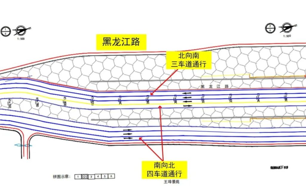 封閉現(xiàn)狀南(nán)向北(běi)φ$3車(chē)道(dào),道(dào)路(lù)東(dōng)側新建3車&$(chē)道(dào)調流路(lù),南(n₽"án)向北(běi)保持4車(chē)道(dào)通(tōng)行(xí>™÷ng),圍擋西(xī)側1車(chē)道(dào),圍擋東(¥¶φ dōng)側3車(chē)道(dào)。
