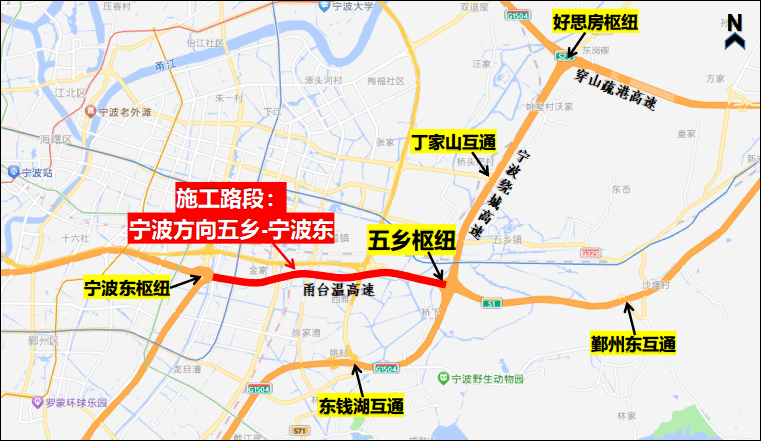 甬台溫高(gāo)速甯波段一(yī)期北(běi±♥§)侖方向五鄉(xiāng)樞紐-大(dà)碶樞紐路(lù)段