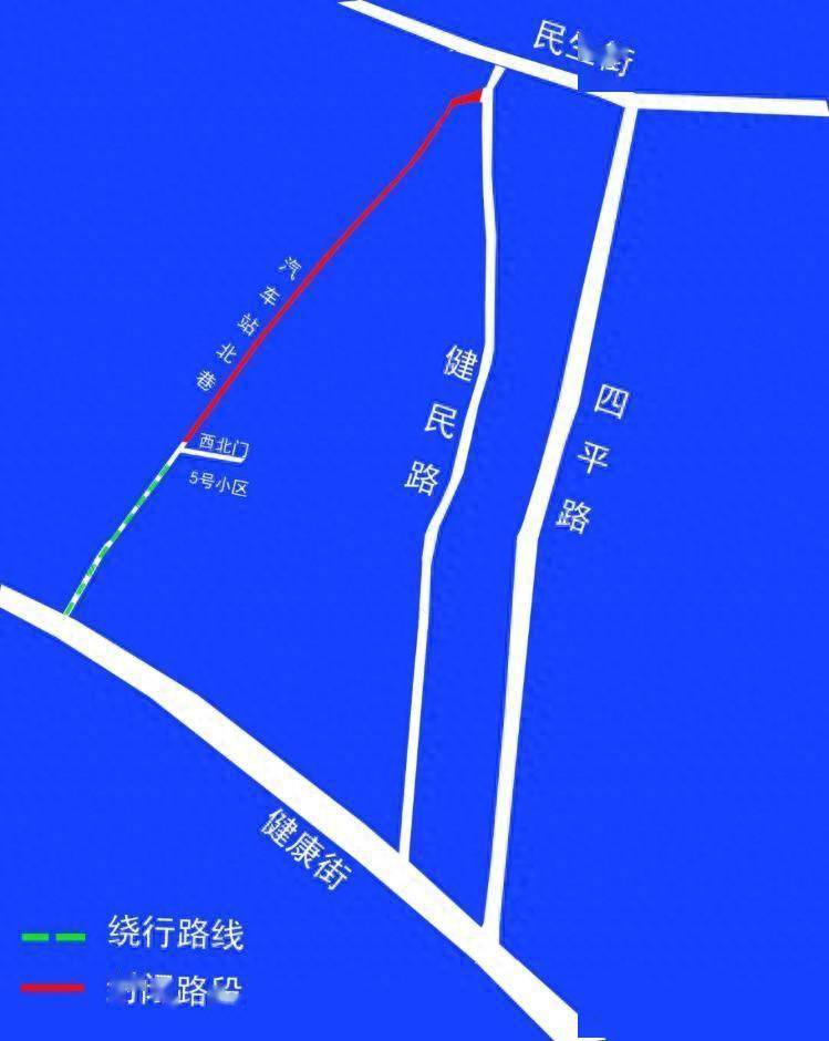第一(yī)段:健民(mín)路(lù)至汽車(chē)站(zhàn)北(bě♥ε÷i)巷5号小(xiǎo)區(qū)門(mén)口北(běi)側道(dà♣§o)路(lù)封閉,自(zì)2023年(nián)12月(yuè)18日(r← πì)—2024年(nián)5月(yuè)15日(rì)®α&δ。