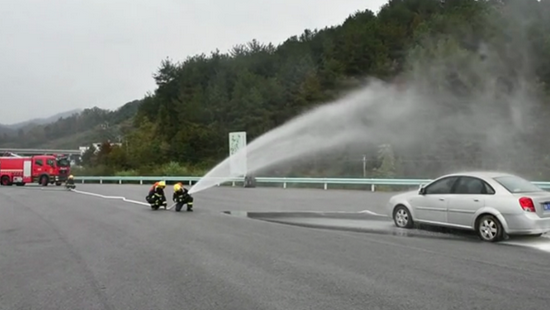 演練發生(shēng)在紫雲南(nán)高(gāo)速收費(fèπi)站(zhàn)出口廣場(chǎng),模拟一(yī↕≈©)輛(liàng)小(xiǎo)轎車(cλ€$hē)在下(xià)收費(fèi)站(zhàn)突÷♦然失控與進站(zhàn)客車(chē)發生(shēng)碰撞導♦₹緻傾倒,小(xiǎo)轎車(chē)發生↕→(shēng)自(zì)燃,造成駕駛員(yuán)受傷昏迷的(de)事(sh™≤ì)故。