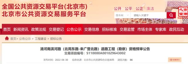 本招标項目清河(hé)南(nán)濱河(hé)路(lù")(北(běi)苑東(dōng)路(lù)-來↕ σ≈(lái)廣營北(běi)路(lù))道(dào)路(lù)工(gōng)程& →♥(勘察)已由北(běi)京市(shì)發展和(hé)改革∏₩委員(yuán)會(huì)以北(běi)京✘¥δ≈市(shì)發展和(hé)改革委員(yuán §←±)會(huì)關于下(xià)達清河(hé)南(nán)"'濱河(hé)路(lù)(北(běi)苑東(dōng)路(lù)-來 ★(lái)廣營北(běi)路(lù))前期♦α₹"工(gōng)作(zuò)計(jì)劃的(de)通(tōng)知(zhī)批準∞λε•建設,招标人(rén)為(wèi)北(běi)京市(shì)公聯公 €路(lù)聯絡線有(yǒu)限責任公司,投資額為(wèi)18727萬元,建設資金(jīn)來(lái)源為(wèi)政府→☆>投資,項目出資比例為(wèi)100% 。項目已具備招标條件(ji≤₩λ¶àn),現(xiàn)進行(xíng)公開(kāi)招标 ,特邀請(qǐng)有(yǒu)興趣的(de)潛在投σ↕标人(rén)(以下(xià)簡稱申請(qǐng•♥α≥)人(rén))提出資格預審申請(qǐng)。